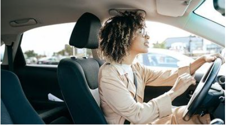 She’s driving a car.