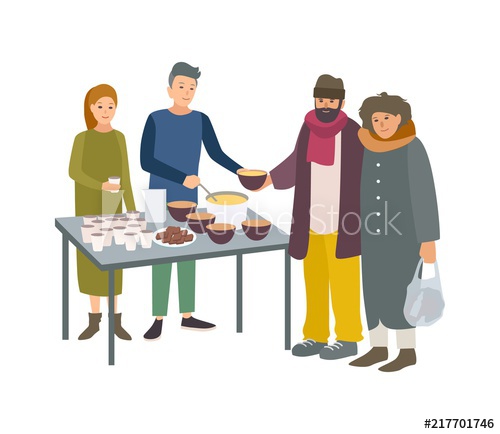 Doing charity means ______ money, cooking, providing food for the people in need.