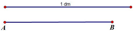 Quan sát hình vẽ ta thấy đoạn thẳng AB ngắn hơn đoạn thẳng 1dm cho trước.