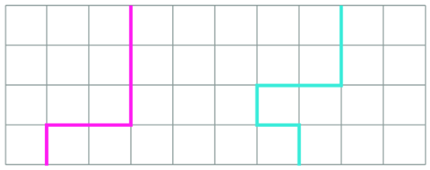 Đường gấp khúc màu hồng gồm 6 cạnh ô vuông nhỏ.