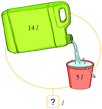- Để tìm số lít nước còn lại trong can ta lấy số lít nước ghi trên can trừ đi số lít nước rót ra xô.