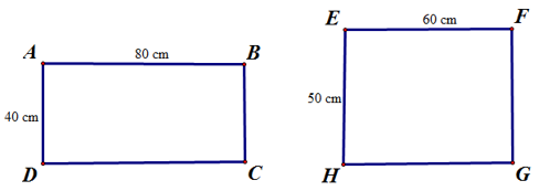 Vì $160\,cm = 160\,cm$ nên chu vi của hình chữ nhật ABCD bằng chu vi của hình vuông EFGH.