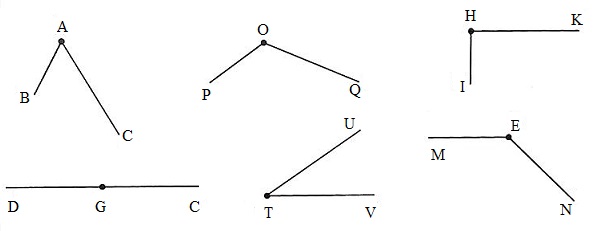 Quan sát hình vẽ để xác định tên góc.