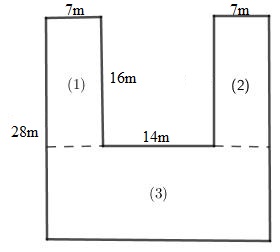 \(7 + 14 + 7 = 28\,\,(m)\)