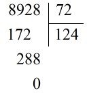8928 : 72 = 124