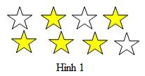 + Hình \(1\) có tất cả \(8\) ngôi sao như nhau, trong đó có \(5\) ngôi sao được tô màu.