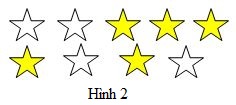 + Hình \(2\) có tất cả \(9\) ngôi sao như nhau, trong đó có \(5\) ngôi sao được tô màu.