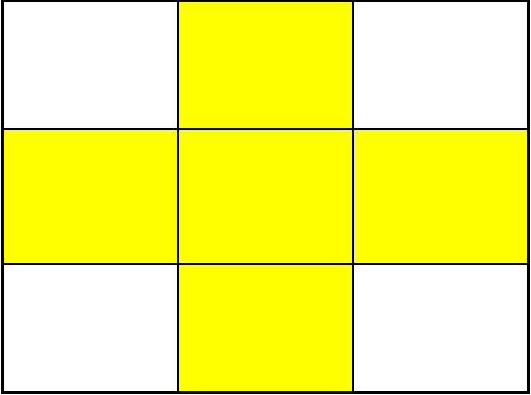 Quan sát hình vẽ ta thấy có tất cả \(9\) ô vuông, trong đó có \(5\) ô vuông được tô màu.