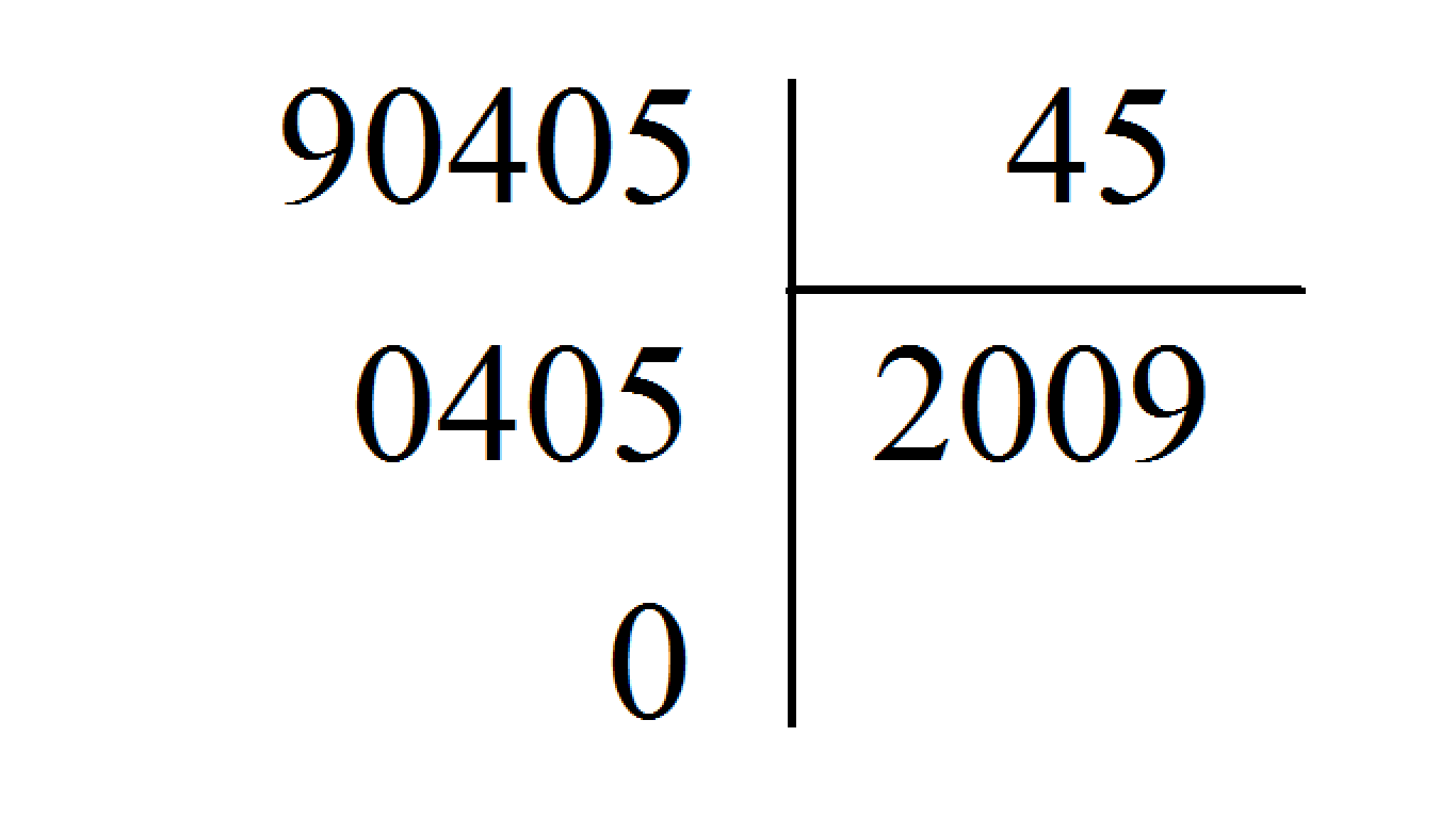 Vậy \(90405:45 = 2009\).