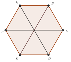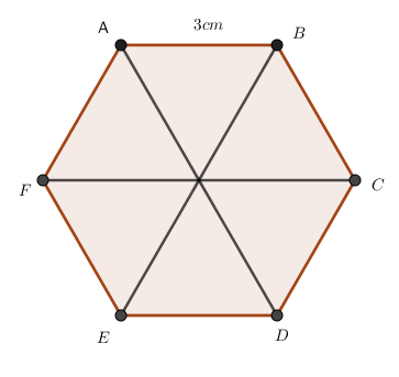 Cho lục giác đều \(ABCDEF\) có \(AB = 3cm\), chọn câu đúng