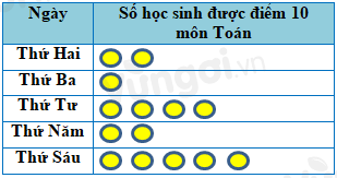 Cho biểu đồ tranh số học sinh khối lớp 6 được điểm 10 môn Toán trong tuần như sau: