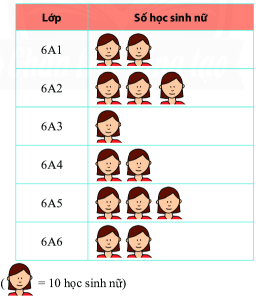 Biểu đồ tranh dưới đây cho biết số học sinh nữ của các lớp khối 6 trường THCS Hoàng Việt.