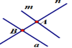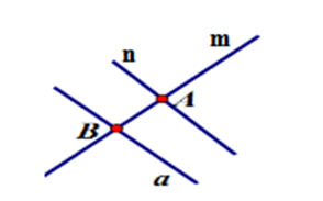 Hình B: Đường thẳng $m$ cắt đường thẳng $n$ tại $A,{\rm{ }}a$ cắt m tại $C,$ cắt $n$ tại $B$ (trái với đề bài là $a$ không cắt $m$) (loại)