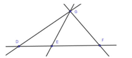 Trong hình có 4 đường thẳng phân biệt, đó là đưởng thẳng $DE,$ đưởng thẳng $GD,$ đưởng thẳng $GE,$ đưởng thẳng $GF.$