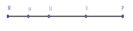 Cho ba điểm $M,{\rm{ }}N,{\rm{ }}P$ thẳng hàng và điểm $N$ nằm giữa hai điểm $M$ và $P.$ Gọi $H,{\rm{ }}K$ lần lượt là trung điểm của các đoạn thẳng $MN,{\rm{ }}NP.$ Biết $MN = 5cm,NP = 9cm.$ Khi đó, độ dài của đoạn thẳng $HK$ bằng