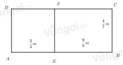 \(\dfrac{4}{7}.\dfrac{{15}}{8} = \dfrac{{15}}{{14}}\) (m2)