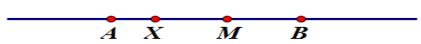 Vì hai tia \(MA,MB\) đối nhau và \(X\) thuộc tia \(MA\) và \(B\) thuộc tia \(MB\) nên điểm \(M\) nằm giữa hai điểm \(B,X\)