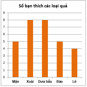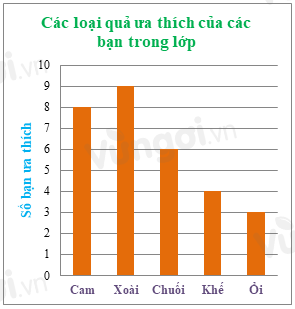 Lớp 6C có số bạn thích các loại quả được biểu diễn bằng biểu đồ sau: