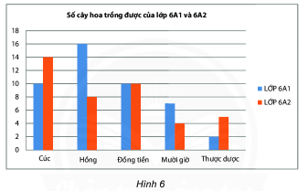 Biểu đồ số cây hoa trồng được của lớp 6A1 và 6A2.