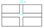 Một mảnh vườn hình chữ nhật có chiều dài 25 m. Chiều rộng bằng 15 m. Người ta làm hai lối đi rộng 1 m như hình vẽ. Phần đất còn lại dùng để trồng cây. Tính diện tích đất dùng để trồng cây.