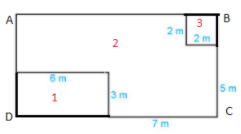 Chiều rộng của hình chữ nhật ABCD là: 2 + 5 = 7 (m)