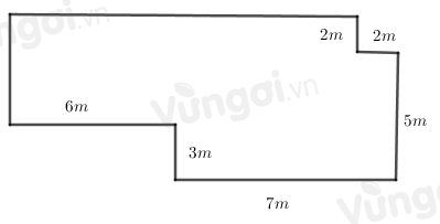 Một mảnh vườn có hình dạng như hình dưới đây. Tính diện tích mảnh vườn.