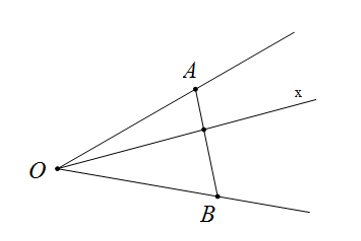 Tia $Ox$ nằm giữa hai tia $OA$ và $OB$ khi tia $Ox$ cắt đoạn thẳng $AB$