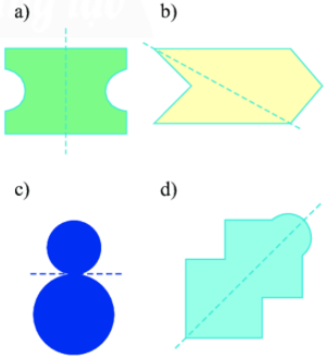 Đường nét đứt ở hình a và d là trục đối xứng. Hai đường ở hình b và c còn lại không phải là trục đối xứng của hình