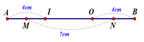 Cho đoạn thẳng $AB = 14cm,$ điểm I nằm giữa hai điểm A và B; $AI = 4cm.$ Điểm O nằm giữa hai điểm I, B sao cho $AI = OB.$ Gọi M, N lần lượt là trung điểm của đoạn thẳng AI, OB. Tính độ dài đoạn thẳng MN.