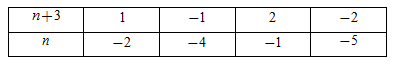 \(Ư\left( 2 \right) = \left\{ { \pm 1; \pm 2} \right\}\) nên \(n + 3 \in \left\{ { \pm 1; \pm 2} \right\}\)