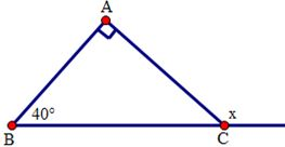 \(x = \widehat A + \widehat B = 90^\circ + 40^\circ = 130^\circ \)