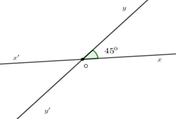 Cho hai đường thẳng \(xx'\) và \(yy'\) giao nhau tại \(O\) sao cho \(\widehat {xOy} = 45^\circ \) . Chọn câu sai.