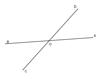 Vì \(AB\) và \(CD\) cắt nhau tại \(O\) nên \(OA\) và \(OB\) là hai tia đối nhau, \(OC\) và \(OD\) là hai tia đối nhau.