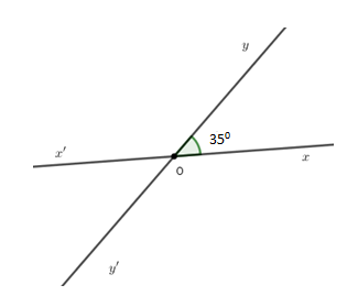Lại có \(\widehat {xOy}\) và \(\widehat {x'Oy}\) là hai góc ở vị trí kề bù nên \(\widehat {xOy} + \widehat {x'Oy} = 180^\circ \)\( \Rightarrow 35^\circ + \widehat {x'Oy} = 180^\circ \Rightarrow \widehat {x'Oy} = 180^\circ - 35^\circ \)