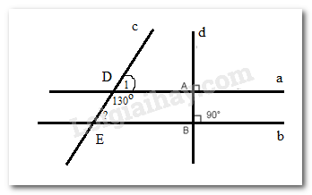 Biết \(a \bot d,\,b \bot d,\,\widehat {A{\rm{D}}E} = {130^0}\). Tính \(\widehat {DEB}\).