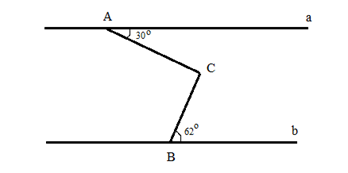Mà \(\widehat {ACB} = \widehat {{C_1}} + \widehat {{C_2}}\) nên \(\widehat {ACB}= 30^\circ + 62^\circ = 92^\circ \)