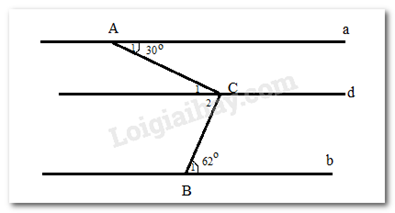 Vì d // b nên \(\widehat {{B_1}} = \widehat {{C_2}}\) ( 2 góc so le trong), mà \(\widehat {{B_1}} = 62^\circ \Rightarrow \widehat {{C_2}} = 62^\circ \)