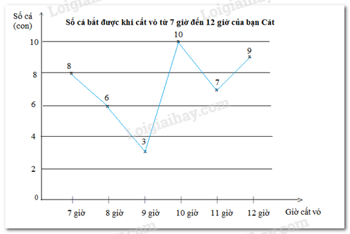 Biểu đồ sau cho biết số cá bạn Cát bắt được khi cất vó trong mỗi giờ từ 7 giờ đến 12 giờ.