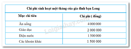 Tổng chi phí sinh hoạt một tháng của gia đình bạn Long là: