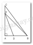 Ta có: Góc EDB là góc ngoài tại đỉnh D của tam giác ADE nên \(\widehat {EDB} > \widehat {DAE} = 90^\circ \Rightarrow \widehat {EDB}\) là góc tù.