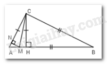 Cho \(\Delta ABC\) có \(\widehat C = {90^0}\), \(AC < BC\) , kẻ \(CH \bot AB\). Trên các cạnh $AB$ và $AC$ lấy tương ứng hai điểm $M$ và $N$ sao cho \(BM = BC,CN = CH\). Chọn câu đúng nhất.