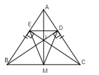 Cho \(\Delta ABC\) cân tại $A,$ hai đường cao $BD$ và $CE$ cắt nhau tại $I.$ Tia $AI$ cắt $BC$ tại $M.$ Khi đó \(\Delta MED\)là tam giác gì?
