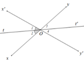 Do đó \(\widehat {tOx} + \widehat {t'Ox} = \widehat {tOt'}\) (5)