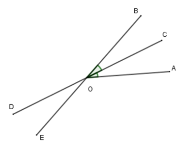 Suy ra \(\widehat {BOC}\) và \(\widehat {DOE}\) là hai góc đối đỉnh.