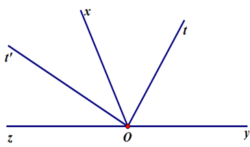 Lại có tia \(Ot\) nằm giữa hai tia \(Ox;Oy\) và tia \(Ot'\) nằm giữa hai tia \(Ox;Oz\) nên tia \(Ox\) nằm giữa hai tia \(Ot;Ot'.\)