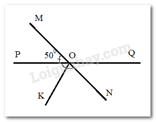 Hai đường thẳng \(MN\) và \(PQ\) cắt nhau tại \(O\), tạo thành \(\widehat {MOP} = 50^\circ \) . Cho tia OK là tia phân giác của \(\widehat {PON}\). Chọn khẳng định sai.