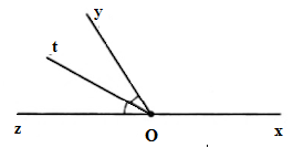 Lại có \(\widehat {zOt};\,\widehat {tOx}\) là hai góc kề bù nên \(\widehat {zOt} + \widehat {tOx} = 180^\circ \)