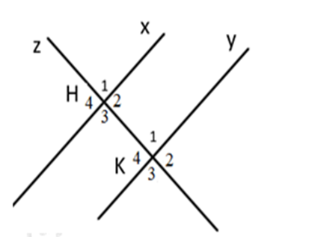 \(\widehat {\;{H_3}}\) và \(\widehat {{K_4}}\) là hai góc so le ngoài
