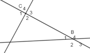 \(\widehat {{C_4}}\) và \(\widehat {{B_4}}\) là hai góc so le trong (sai, vì đây là 2 góc đồng vị), loại C