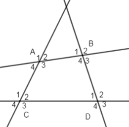 Dựa vào tính chất các góc tạo bởi một đường thẳng cắt 2 đường thẳng.